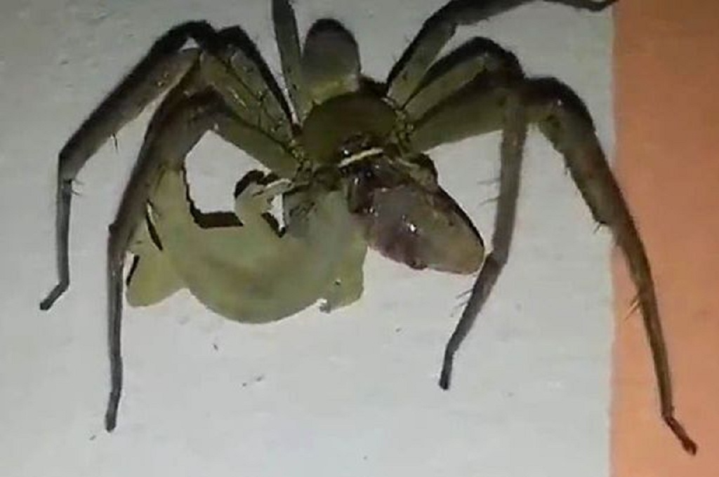 Seperti dikutip Mirror.co.uk, Selasa (21/10/2014), laba-laba yang diduga berjenis giant huntsman itu menancapkan taringnya ke bagian leher, membuat cicak lumpuh tak berdaya. Pemandangan paling mengerikan adalah saat laba-laba mencoba melahap mangsanya.