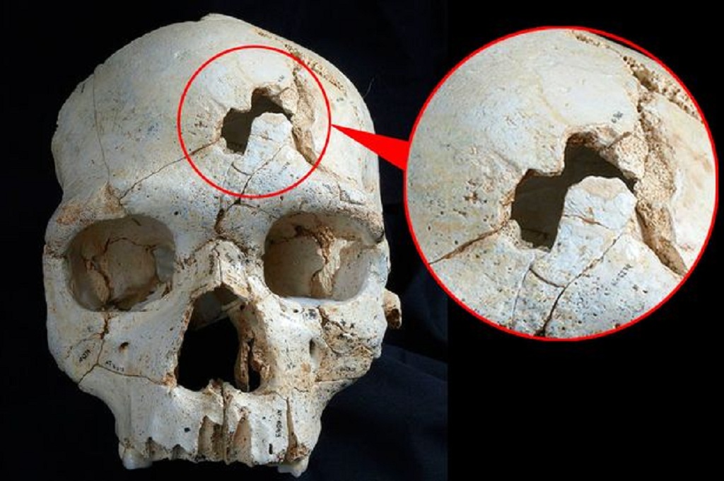 Bekas luka pada sebuah tulang tengkorak manusia yang ditemukan di sebuah lubang di Gunung Atapuerca, Spanyol, dapat menjadi indikasinya. Tengkorak itu diperkirakan berasal dari 430 ribu tahun lalu.