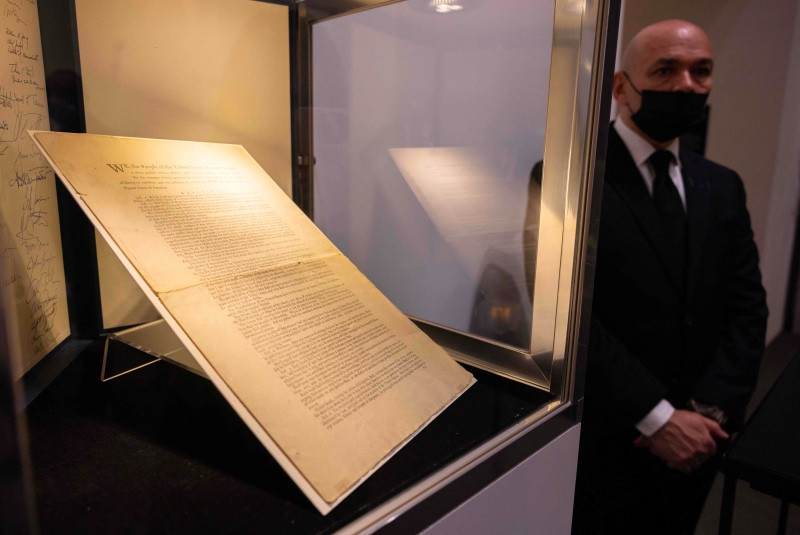 Dilansir dari AFP, Jumat, 19 November 2021, para pendiri AS, termasuk George Washington, Benjamin Franklin, dan James Madison menandatangani salinan di Philadelphia's Independence Hall pada 17 September 1787. Selain itu, diratifikasi pada tahun berikutnya.
