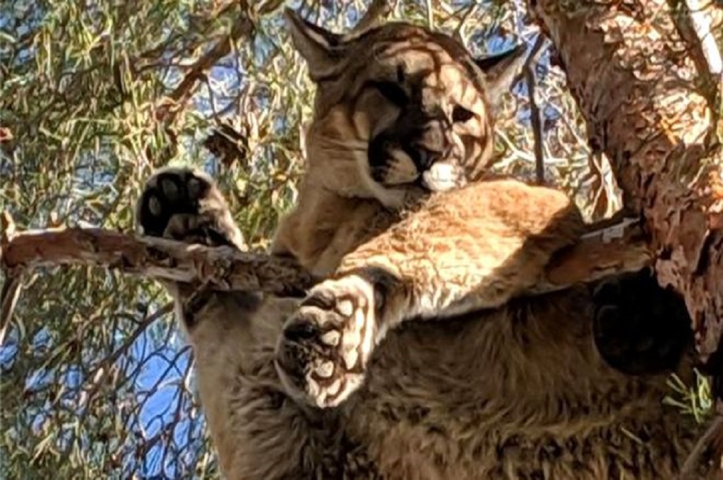 Petugas pemadam kebakaran pun merespons panggilan warga ke sebuah properti di San Bernardino. Singa gunung atau juga disbeut cougar terlihat sedang beristirahat di dahan pohon.