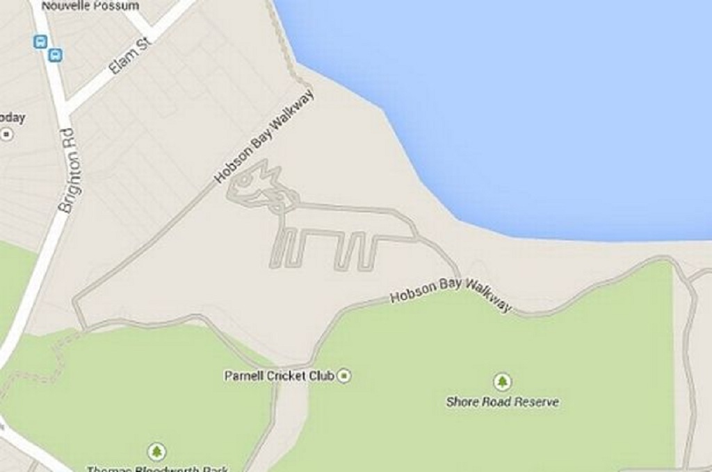 Sejumlah pola garis yang membentuk kucing itu terlihat di Google Maps, tepatnya di area Hobson Bay, Auckland, Selandia Baru. Google belum dapat memastikan bagaimana gambar itu bisa ada di situ.