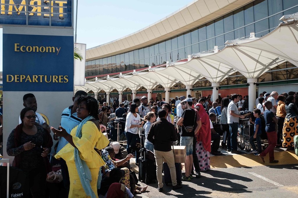 Karena operasional bandara dihentikan sejak Selasa malam, para penumpang diimbau untuk tidak datang ke Bandara Internasional Jomo Kenyatta pada Rabu pagi hingga ada pemberitahuan lebih lanjut. Bandara tersebut adalah yang tersibuk di Afrika Timur.