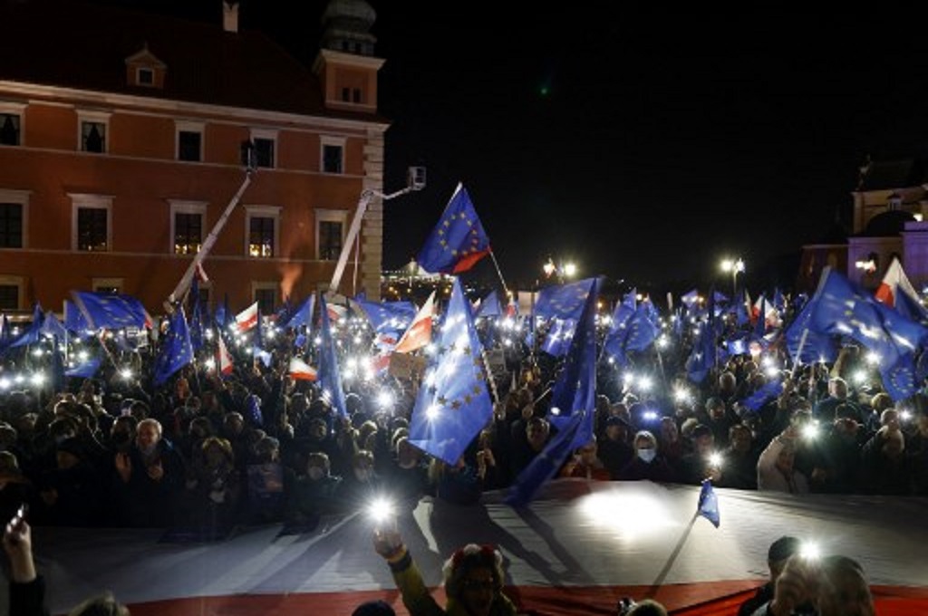 Donald Tusk, mantan presiden Dewan Eropa dan kini menjadi kepala partai oposisi Civic Platform, menyerukan masyarakat untuk "membela Polandia Eropa" dalam sebuah aksi protes di ibu kota Warsawa.