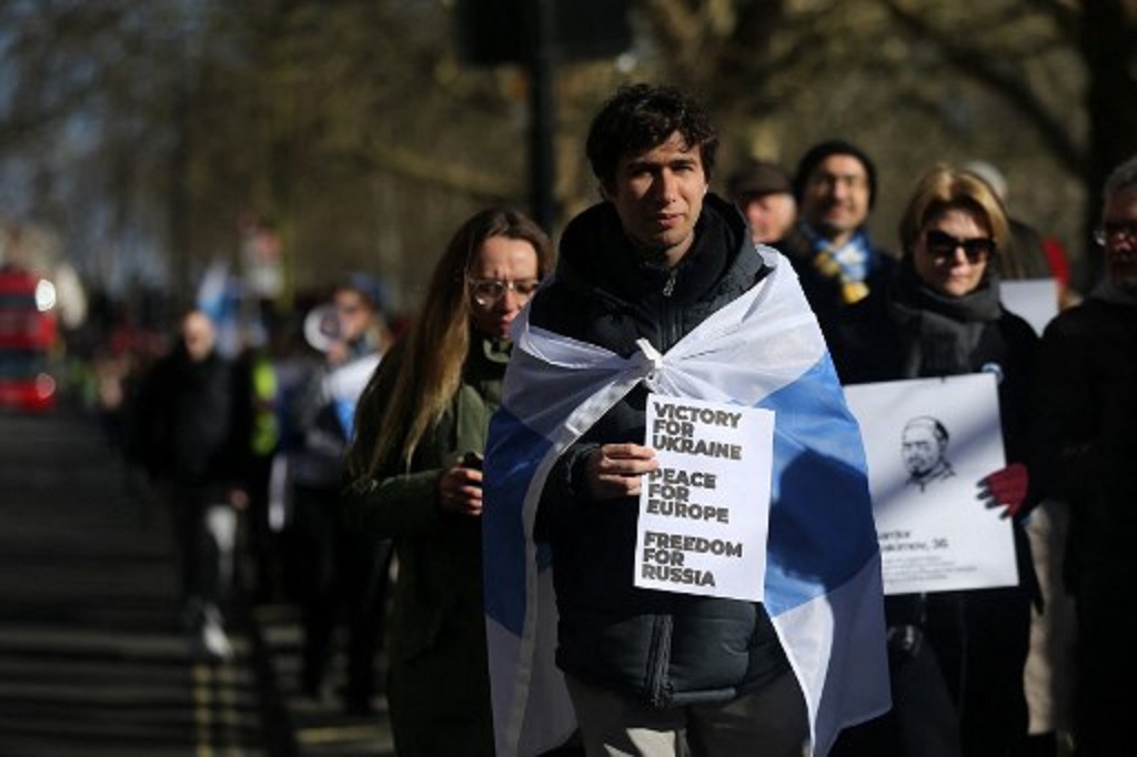 Dalam demonstrasi yang digelar Stop the War Coalition di Portland Place, London, para pengunjuk rasa meneriakkan slogan-slogan anti-perang, sembari memegang spanduk menentang pengiriman lebih banyak senjata ke Ukraina dan juga Rusia. Kelompok itu kemudian berbaris menuju alun-alun Trafalgar.