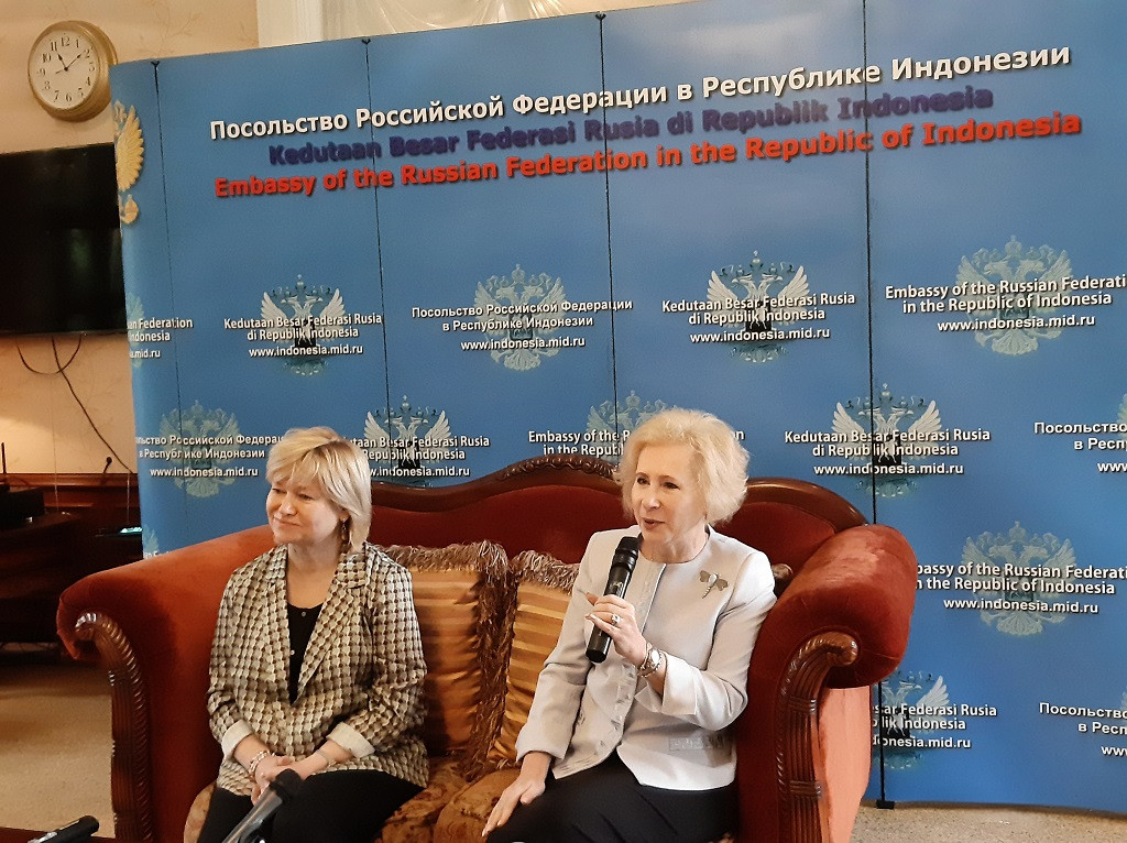 Dalam kesempatan tersebut, kata Lyudmila, dua musisi Rusia hadir. Begitu pula dengan Ketua Parlemen Rusia yang akan hadir dalam Parliamentary G20 di Jakarta Oktober mendatang.
