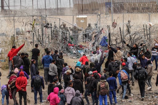Para pejabat perbatasan mengatakan para migran menerobos pagar kawat berduri di kota El Paso dengan menutupi mereka dengan pakaian dan karton dalam upaya untuk melompati barikade dan masuk ke AS.