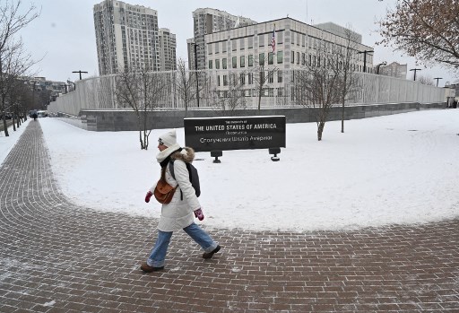 Sebagian besar staf kedutaan telah diperintahkan untuk meninggalkan Ukraina dan warga AS telah disarankan untuk meninggalkan negara itu dengan cara komersial.