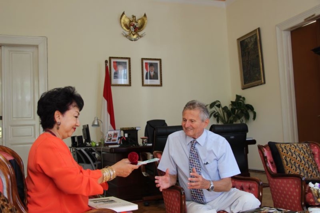 Duta Besar RI untuk Hungaria, Wening Esthyprobo Fatandari menerima kunjungan kehormatan, Dr. Paul Kiszely, seorang Biologist, Consultant, Environment, Foreign Affairs of Local Government of Balatonfured di KBRI Budapest 31 Agustus.