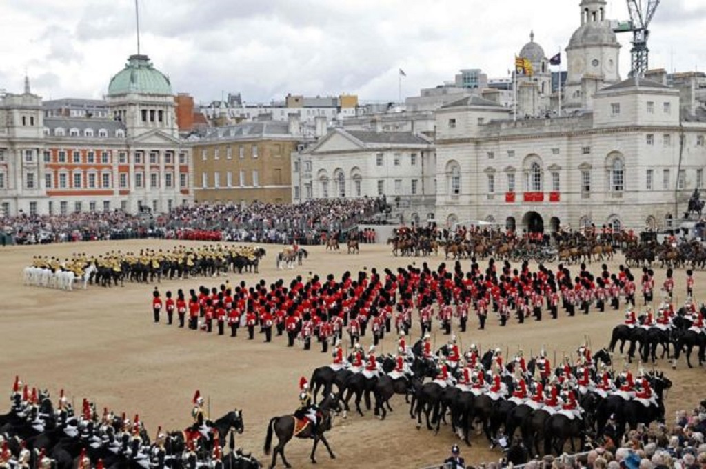 Parade Trooping the Colour melibatkan sekitar 1.400 prajurit Inggris. Unit berkuda artileri Inggris menembakkan 41 senjata sebagai bentuk penghormatan terhadap sang ratu di Green Park.