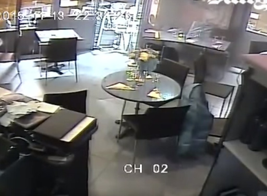 Video itu juga menunjukkan seorang pelayan yang membantu seorang perempuan terluka. Mereka tampak bersembunyi di balik bar yang berada di cafe itu.