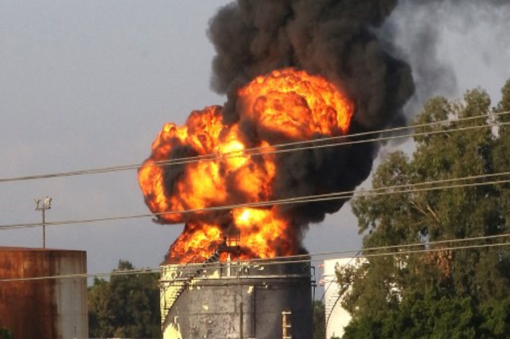 Belum ada laporan mengenai korban tewas maupun luka di fasilitas tersebut. Sementara itu, seorang fotografer AFP melihat api besar di atas tangki yang terbakar, dengan gumpalan asap hitam mengepul ke udara.