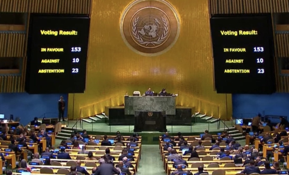 Resolusi mendesak gencatan untuk kemanusiaan segera dilakukan di Gaza. Adapun resolusi itu didukung oleh 153 negara, 10 menolak dan 23 negara lainnya memilih abstain.