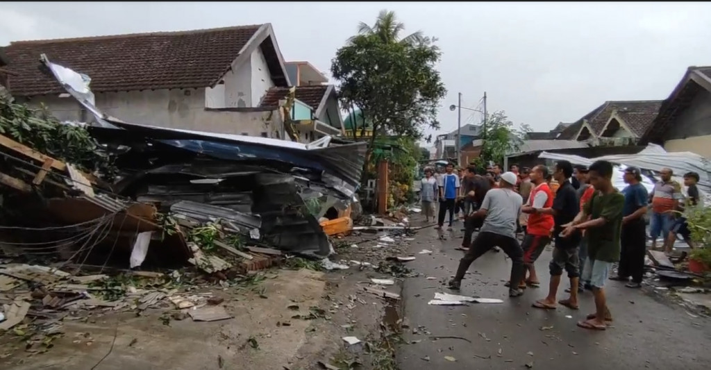 Rumah warga yang mengalami kerusakan umumnya di bagian atap. Banyak genting beterbangan setelah disapu angin kencang disertai hujan.