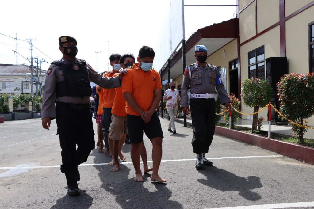 Akibat perbuatannya puluhan pemuda tersebut disangkakan dengan Pasal 170 ayat 1 KUHP dan pasal 351 ayat 1 KUHP Jo Pasal 55 ayat 1 ke-1e KUHP ancaman hukuman maksimal 5 tahun 6 bulan penjara.
