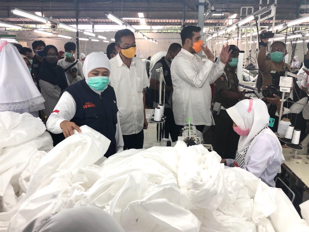Pihak pabrik menyampaikan kepada Khofifah mampu memproduksi satu juta unit baju hazmat per bulannya. Ketersediaan bahan baku produksi diprediksi cukup untuk tiga bulan ke depan.