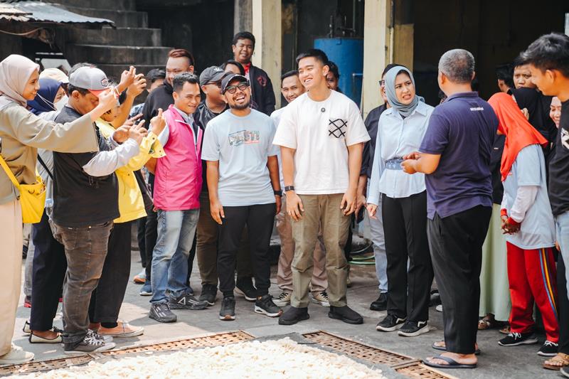 Solo: Ketua Umum DPP PSI Kaesang Pangarep mengunjungi Pabrik Kerupuk Ulam Sari, Kecamatan Pasar Kliwon, Kota Solo. Dalam kunjungannya, Kaesang didampingi Calon Wakil Wali Kota Solo Astrid Widayani.