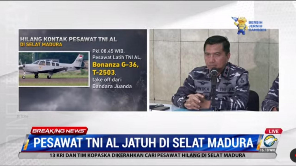 "Pesawat mengalami suatu gangguan dan kemungkinan jatuh ke laut dan tenggelam," kata Komandan Pusat Penerbangan Angkatan Laut Laksamana Muda Dwika Tjahja Setiawan, Rabu, 7 September 2022.
