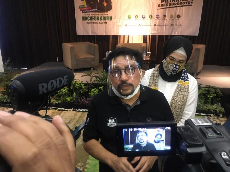 "Covid-19 ini harus kita perangi bersama. Upaya apapun jika tidak dibarengi dengan kesadaran masyarakat sulit. Nah, sekarang tugasnya adalah bagaiamana agar masyarakat ini sadar, sadar akan kesehatannya, sadar menjaga jarak, maupun sadar dalam menggunakan masker," kata bakal calon Wali Kota Surabaya ini.