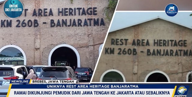 Jakarta: Rest Area Heritage Banjaratma di KM 260B Tol Pejagan-Pemalang, ramai dikunjungi kendaraan pemudik Lebaran 2023. Bangunan bekas pabrik gula Belanda ini menjadi daya tarik pemudik dari Jawa Tengah menuju Jakarta dan sebaliknya.