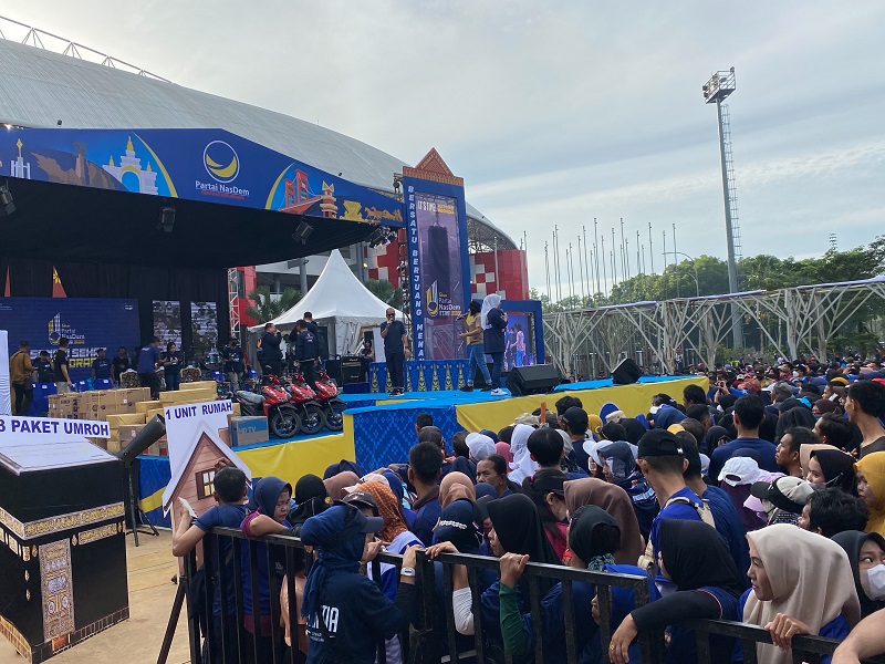 Adapun hadiah utama yang diberikan Partai NadDem yakni rumah, mobil, umrah, motor, dan ribuan hadiah lainnya.
