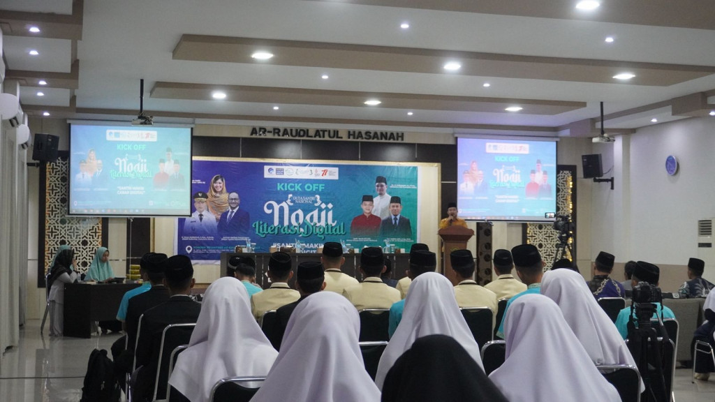 Medan: Duta Santri Nasional secara resmi memulai pelaksanaan program Ngaji Literasi Digital melalui Kick Off yang dilaksanakan di Pondok Pesantren Ar-Raudlatul Hasanah, Medan pada Sabtu, 13 Juli 2022. Ngaji Literasi Digital merupakan program kerja sama antara Duta Santri Nasional dengan Kementerian Komunikasi dan Informatika RI serta Siberkreasi.