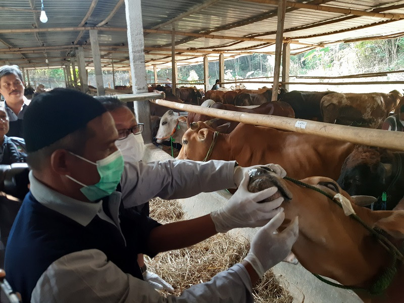 hewan kurban menjelang Iduladha 2023. Pengecekan kesehatan hewan kurban dilakukan di seluruh penampungan hewan kurban di wilayah setempat.