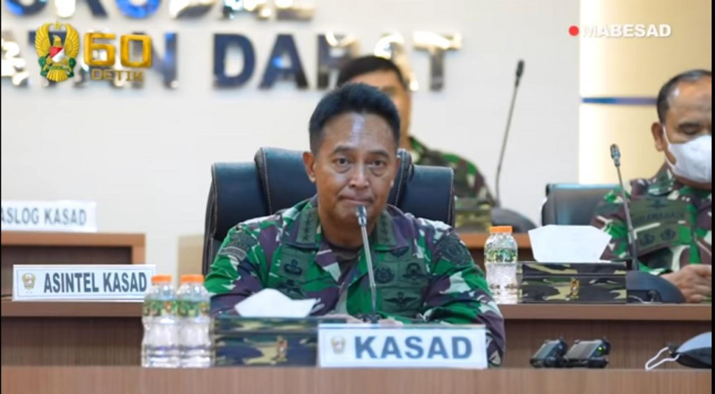 Andika bersama jajaran petinggi TNI AD melakukan teleconference rutin untuk memantau penanganan korban gempa bumi di Kabupaten Mamuju, Sulawesi Barat. Agenda rutin tersebut digelar di Puskodal Angkatan Darat.?