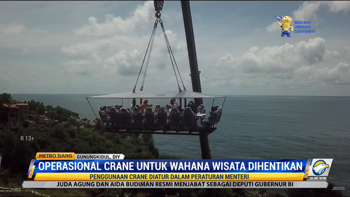 Gunungkidul: Mobile crane untuk wisata “Ngopi In The Sky” yang sempat viral kini dihentikan sementara. Pemberhentian sementara ini merupakan instruksi langsung dari Dinas Pariwisata Gunungkidul lantaran pengelola wisata belum mengantongi izin operasional.
