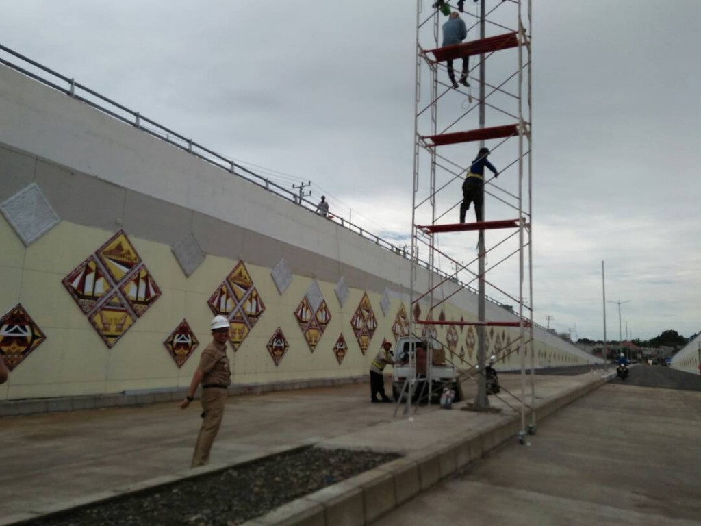 underpass di simpang lima bandara, jalan Perintis Kemerdekaan Makassar, Sulawesi Selatan, bisa dilalui kendaraan, sebelum lebaran, tepatnya mulai 18 Juni 2017. Saat ini proyek telah 80 persen rampung.