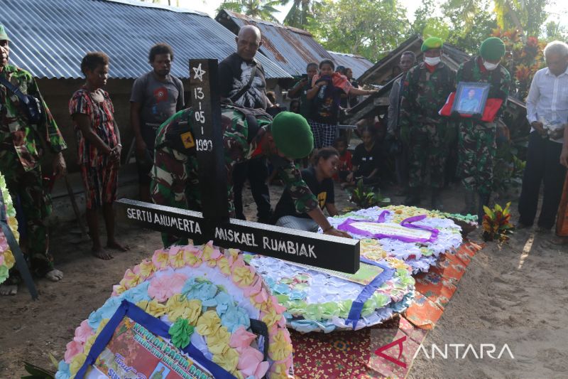 "Upacara militer pemakaman Sertu Miskael diiringi isak tangis keluarga dan ratusan warga Kampung Friwen yang turut berduka," ujar Kapendam.