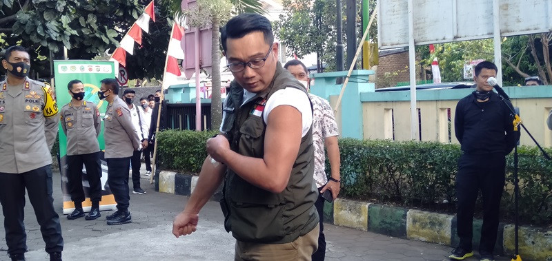 Bandung: Gubernur Jawa Barat, Ridwan Kamil, telah menjalani penyuntikan pertama