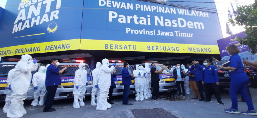 Surabaya: DPW Partai NasDem Jawa Timur meluncurkan lima ambulans untuk digunakan secara gratis bagi masyarakat khusus penderita covid-19. Ambulans itu sekaligus untuk membantu pemerintah dalam menangani permasalahan covid-19.