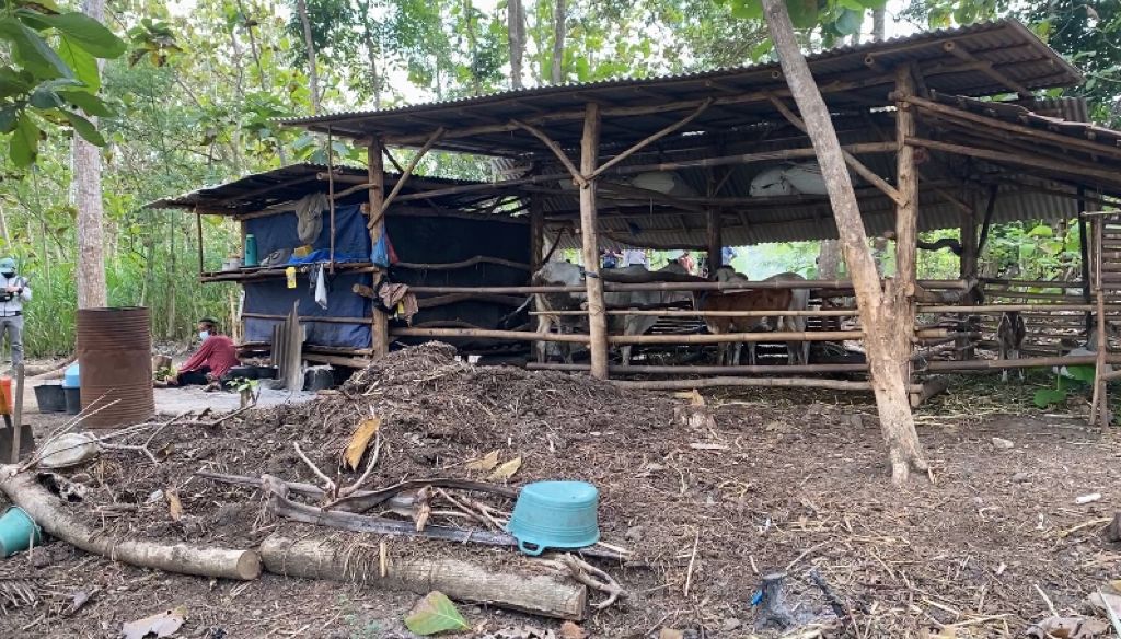 Keluarga Ngadiono tinggal berdempetan dengan kandang sapi selama beberapa bulan terakhir. Ia tinggal di sana sambil mengurusi ternak keluarganya.