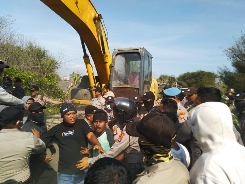 Proses penggusuran lahan tambak dilakukan Kamis, 31 Oktober hingga Jumat, 1 November 2019. Warga yang mengelola tambak udang sempat melawan upaya penggusuran.