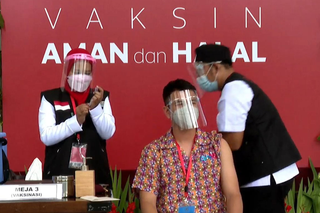 Raffi Ahmad bersama beberapa rekannya usah melakukan vaksin covid-19.