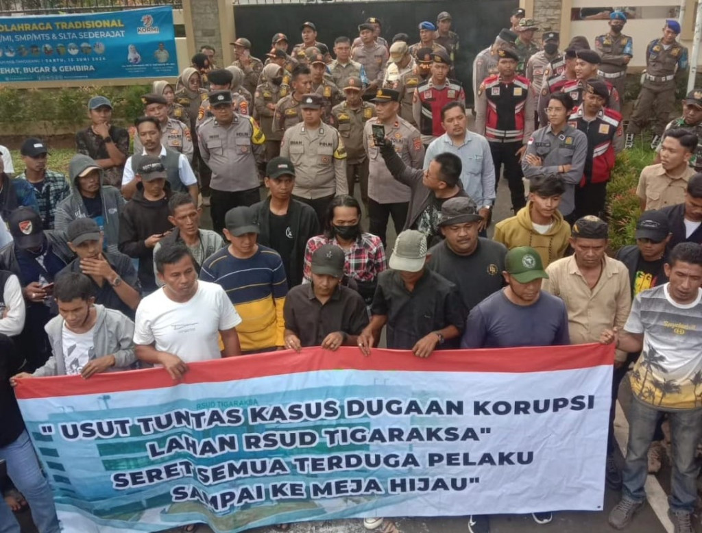 Rumah Sakit Umum Daerah (RSUD) Tigaraksa di Kabupaten Tangerang, Banten. Masa aksi menduga ada korupsi dalam proses pengadaan lahan yang diduga melibatkan sejumlah pejabat di Pemkab Tangerang.