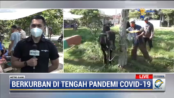 “Penyembelihan dilakukan sesuai dengan protokol kesehatan sesuai dengan peraturan yang berlaku di daerah,” kata reporter Metro TV, Dana Panagribuan, melaporkan.