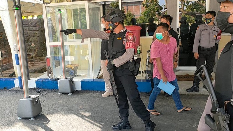 "Kami gunakan satu pintu, baik pintu masuk maupun pintu keluar, sudah ada petugas yang siaga di pintu masuk mako. Mereka bertugas untuk memeriksa seluruh pengunjung atau yang berkepentingan ke Mapolres," ucap Darman.