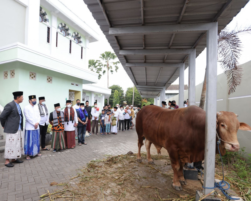 Ketua Takmir Majid Agung Darul Falah Pacitan, H. Wasi Prayitno menyambut baik kedatangan Ibas dan sumbangan hewan sapi yang akan dikurbankan.