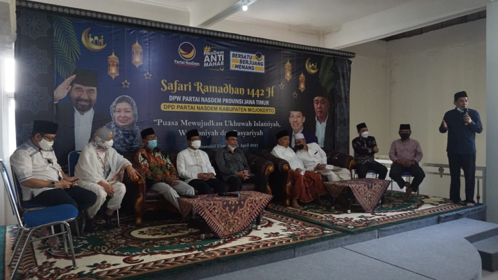 Partai NasDem Jawa Timur menggelar safari Ramadan di Kampus Institut Kiai Haji Abdul Chalim (IKHAC) Ponpes Amanatul Ummah, Kecamatan Pacet, Kabupaten Mojokerto. Kegiatan tersebut dilakukan usai bersilaturahmi dengan Ketua PWNU Jawa Timur, KH Marzuki Mustamar, di Malang.