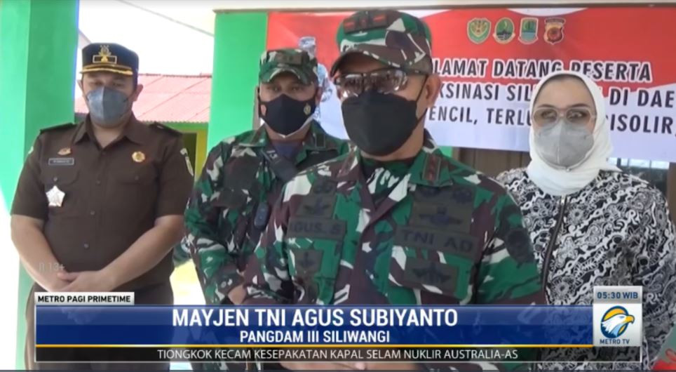 Bersama Forkopimda Karawang, Kodam III Siliwangi juga menyalurkan bantuan paket sembako bagi warga yang terdampak covid-19. Pangdam III Siliwangi, Mayjen TNI Agus Subiyanto, memantau proses vaksinasi covid-19 di wilayah Pesisir Pantai Utara, Desa Sedari, Kecamatan Cibuaya, Kabupaten Karawang.