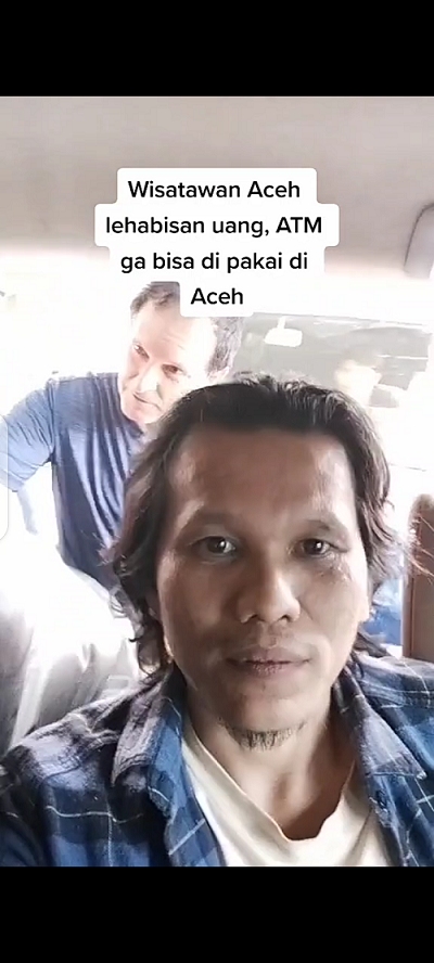 Aceh. Ia tidak bisa melakukan transaksi di Anjungan Tunai Mandiri (ATM) bank syariah di Aceh seperti BSI dan Bank Aceh.