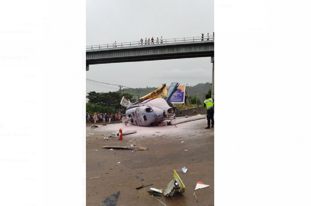 Namun, pilot memutarkan helikopter kembali ke helipad. Belum sempat mendarat, helikopter jatuh tak jauh dari helipad.