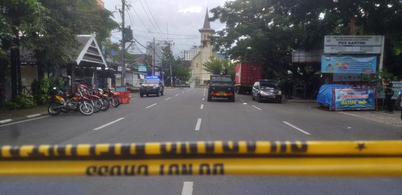 Sejumlah ruas jalan menuju gereja disterilisasi. Yakni Jalan Kajaolalido, Jalan Kartini, dan Jalan Botolemoangang.