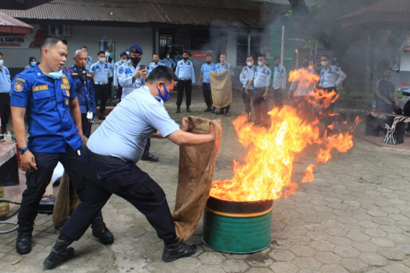Simulasi penanganan kebakaran melibatkan Dinas Pemadam Kebakaran dengan memberikan pelatihan singkat cara memadamkan api kepada petugas maupun warga binaan pemasyarakatan. Dan hal paling utama saat penanganan tidak panik dan tetap tenang.