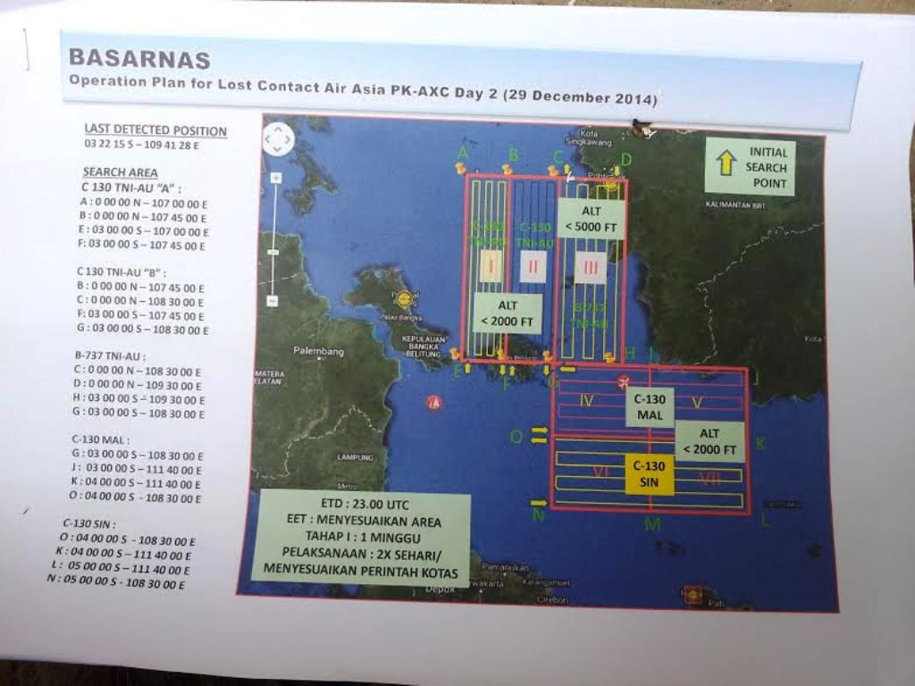 Pesawat AirAsia QZ8501 hilang kontak Minggu (28/12/2014) pukul 06.17 WIB, dalam perjalanan dari Bandara Juanda menuju Bandara Changi, Singapura. Kemenhub dan otoritas lainnya memperkirakan pesawat itu hilang kontak di antara Pulau Belitung dan Kalimantan.