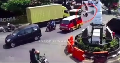 Belum lama ini rekaman pengendara motor terjatuh saat hendak berbelok di pertigaan Parcom, Purwakarta, Jawa Barat, beredar di media sosial. Di waktu yang sama, trik melintas dari arah berlawanan seperti korban terlihat seperti terlindas.