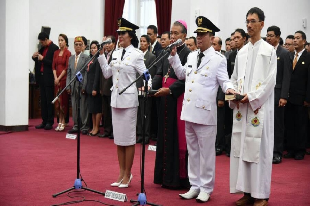Pelantikan Karolin-Herculanus berlangsung di Balai Petitih, Kantor Gubernur Kalbar, Senin 22 Mei 2017. Gubernur Kalbar Cornelis memimpin upacara pelantikan dan pengambilan sumpah di Balai Petitih.