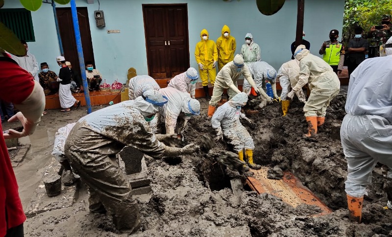 Almarhumah Suntari dimakamkan di pemakaman Sentono Ratu. Sebelumnya, beberapa bulan lalu putra Nasir juga meninggal lantaran covid-19.