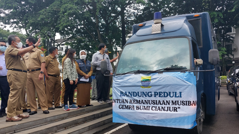 Bandung: Wali Kota Bandung, Yana Mulyana, tak turut dalam rombongan bertolak ke Kabupaten Cianjur, Jawa Barat, untuk menyerahkan bantuan bagi korban gempa bumi. Yana hanya melepas rombongan di Balai Kota Bandung, Jalan Wastukencana pada Senin, 28 November 2022.